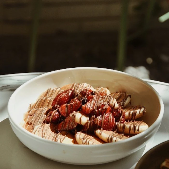 12 Mini Pancakes, Strawberry, Banana, Forest Fruits, Nutella And Peanut