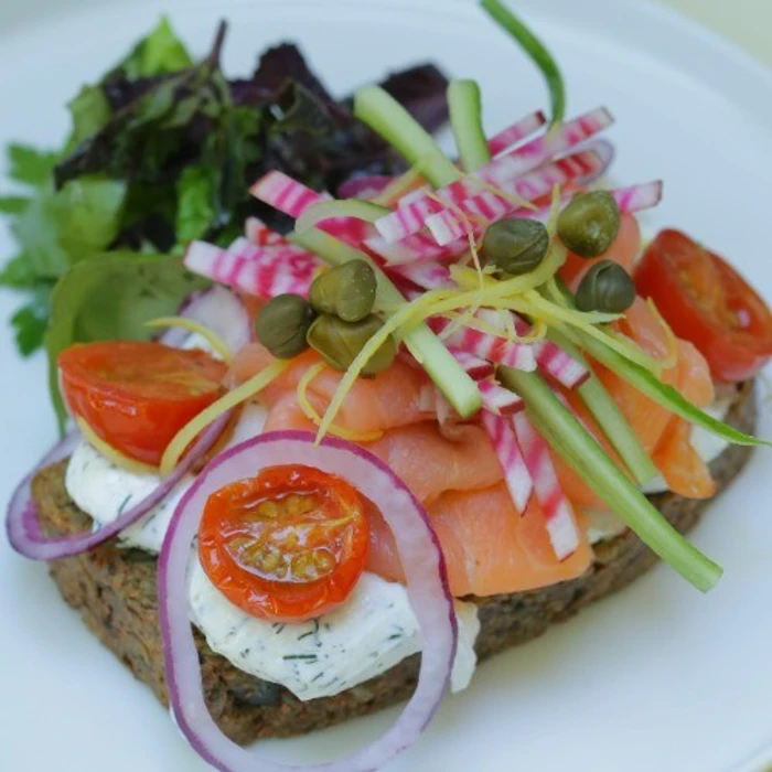 Smoked Salmon, Fresh Cheese, Dill, Capers, Red Onion, Cucumber,gluten Freee Bread