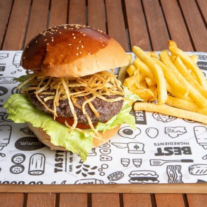 160 G 100% Beef Burger Patties, Tomatoes, Greens, Crispy Potatoes And Friez Potatoes