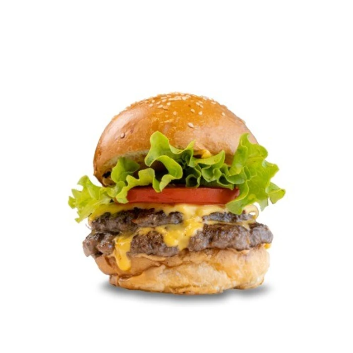 180 Gr. Homemade Smash Meatballs, Homemade Hamburger Buns, No7 Special Sauce, Double Cheddar Cheese, Lettuce, Tomato, Pickle, Silver Onion, With French Fries