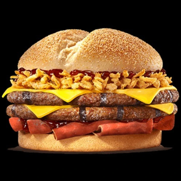 2 Kat Whopper® eti, Füme Eti, Barbekü Sosu, Cheddar Peyniri Ve Çıtır Kaplamalı Soğanları İle Nefis Bir Seçim.